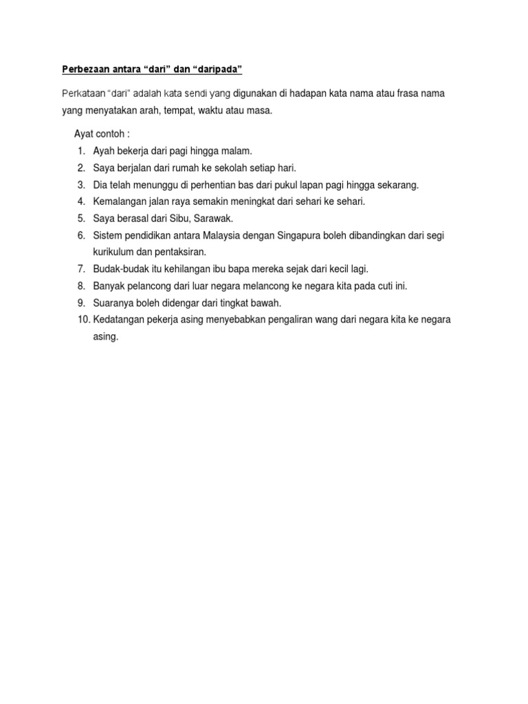 Perbezaan Antara Dari Dan Daripada Pdf